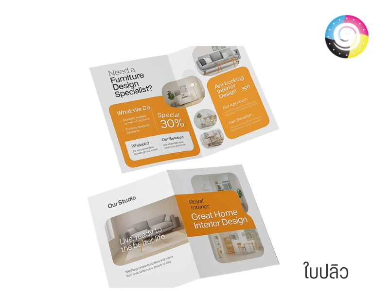 รับพิมพ์แผ่นพับโบรชัวร์ ขนาด A4, A5 พิมพ์ออฟเซ็ต 4 สี รับพิมพ์ใบปลิวพิมพ์ 4สี / พิมพ์ใบปลิวขาวดำ ราคาถูก ใบปลิวไม่มีขั้นต่ำ ราคาขึ้นอยู่กับจำนวน ลูกค้าสามารถส่งไฟล์งานออกแบบมาให้ทางโรงพิมพ์ได้เลย หรือต้องการให้ทางโรงพิมพ์ช่วยออกแบบให้ได้ ทางโรงพิมพ์มีแบบตัวอย่างผลงานเป็นไอเดียให้ลูกค้าชม